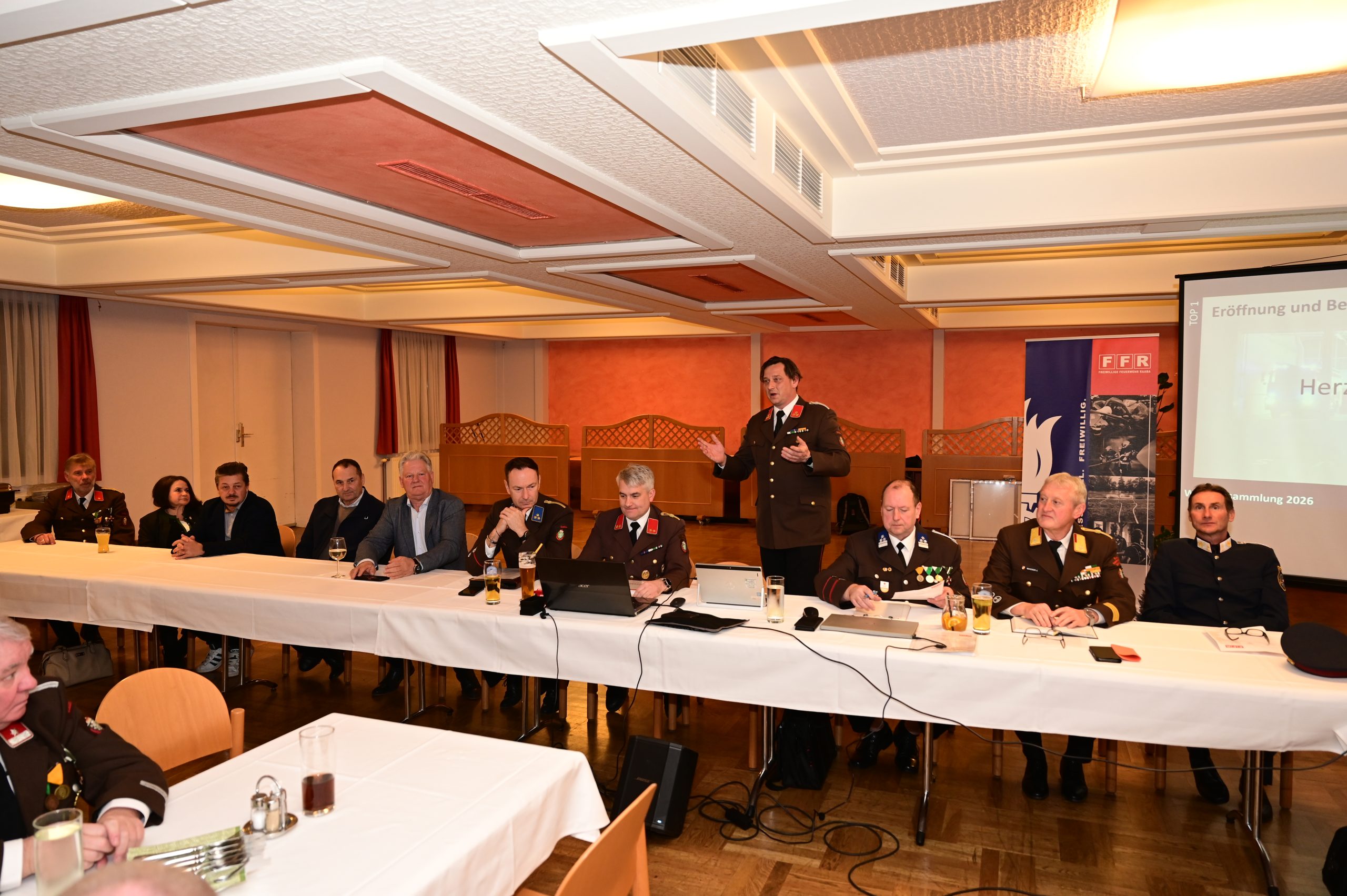 Am 6. März 2026 fand die diesjährige Wehrversammlung der Freiwilligen Feuerwehr Raaba statt. HBI Ing. Martin Trampusch eröffnete die Versammlung pünktlich um 19:00 Uhr und durfte zahlreiche Ehrengäste begrüßen. Unter ihnen befanden sich Bürgermeister Karl Mayrhold, Vizebürgermeister Adi Kohlbacher und Vizebürgermeister Werner Müller, Gemeindekassier Udo Hebesberger, Vorstandsmitglied Claudia Riedl-Golesch, Chefinspektor Siegfried Hinterleitner von der Polizei Raaba sowie mehrere Ehrendienstgrade der Feuerwehr.