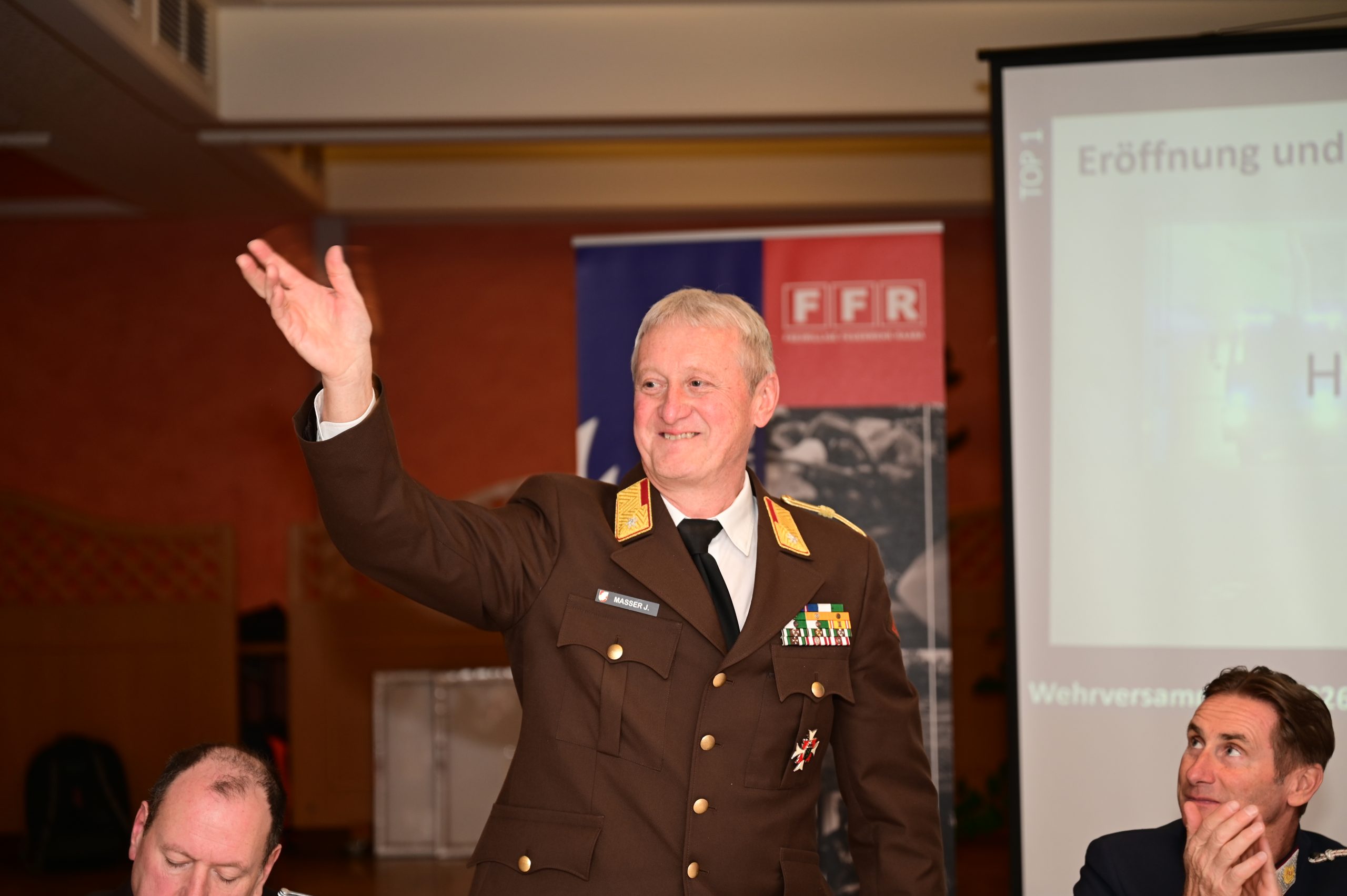 Ein besonders bewegender Moment des Abends war der Abschied von ABI Johann Masser. In seinen Worten überbrachte er die Grüße des Bereichskommandos, bedankte sich herzlich für die langjährige, ausgezeichnete Zusammenarbeit und gab bekannt, dass dies seine letzte Wehrversammlung in Raaba gewesen sei. Mit Vollendung seines 65. Lebensjahres im Oktober wird er seine Funktion als Abschnittskommandant zurücklegen.