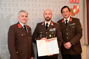 Eine besondere Auszeichnung erhielt Hauptlöschmeister Christian Erkinger: Ihm wurde das Zeugnis über die erfolgreich abgelegte Kommandantenprüfung überreicht.
