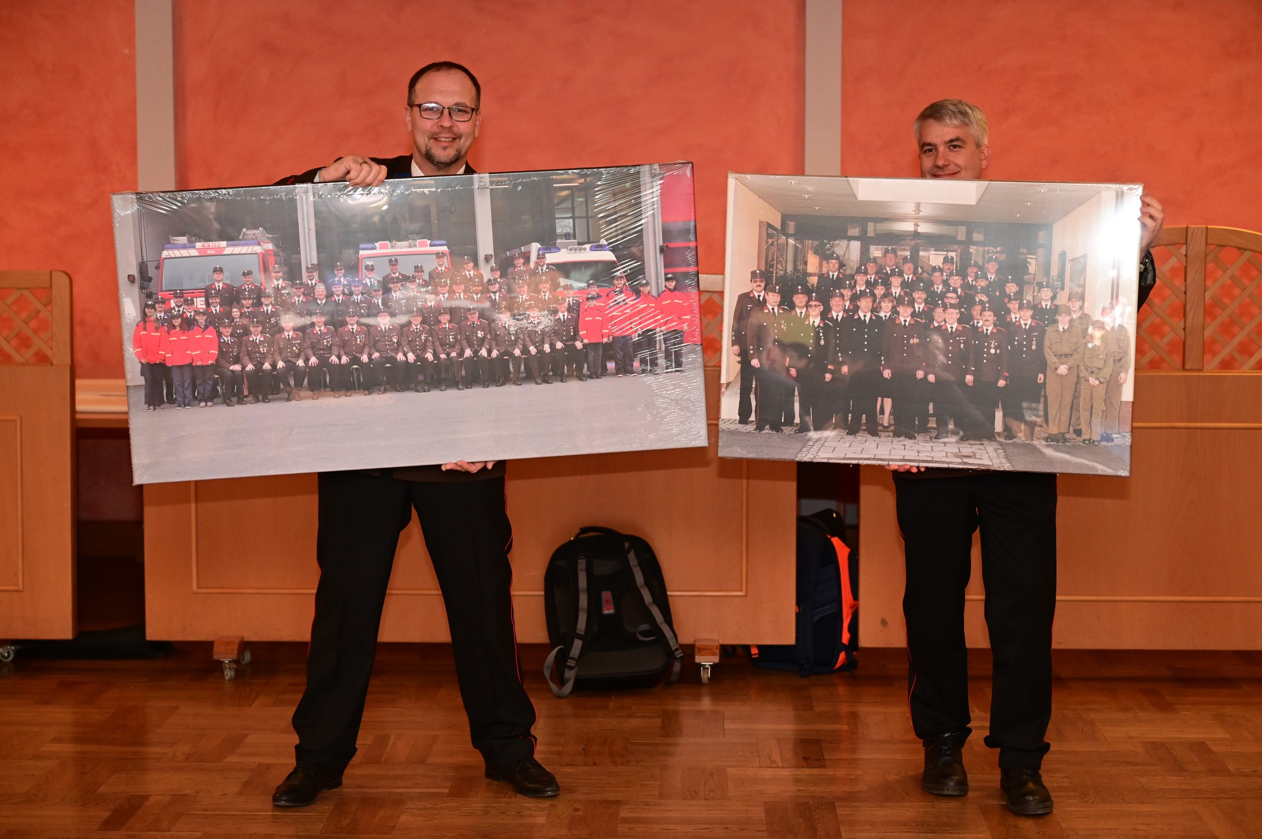 Zum Abschluss gab es noch ein kleine Überraschung für die Wehrversammlung – Gruppenfotos von Einst und Jetzt für das Rüsthaus.